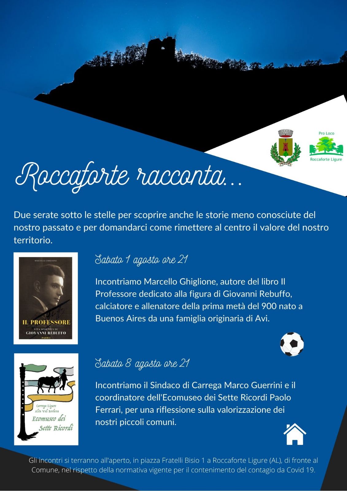 Il Comune di Roccaforte Ligure in collaborazione con la Pro Loco di Roccaforte organizzano due serate sotto le stelle per scoprire anche le storie meno conosciute del nostro passato e per domandarci come rimettere al centro il valore del territorio.